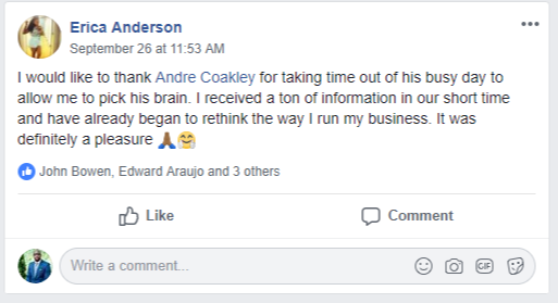 Specializing also as a small business developer, Andre has developed over five businesses of his own. In 1998, he moved into the financial industry with a primary focus on creative financing in both Business Funding Portfolios and Real Estate Investment. As a veteran business developer, he is rich in knowledge and resources that serve as foundations for his entrepreneurial spirit. He is passionate about empowering entrepreneurs of all levels on their business growth and development.